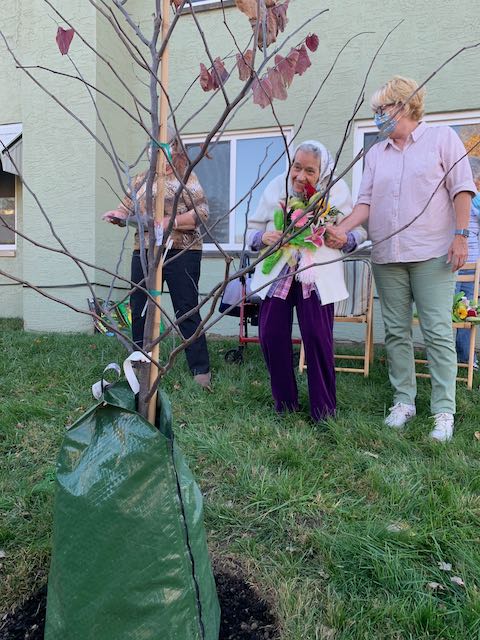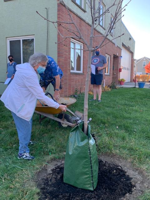 Trees were planted for Tom Eviston (Buckeye tree), Raymond “Doc” Hitchcock (Redbud), and Loraine Carlot (White Dogwood).