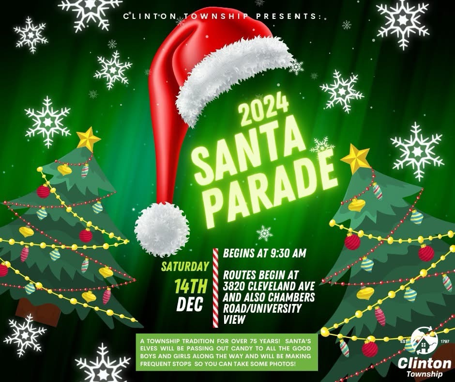 Clinton Township is proud to sponsor this 75 year old tradition of hosting Santa and his elves as they walk through the neighborhood delivering candy to good little boys and girls! Don’t miss this festive holiday tradition THIS SATURDAY, December 14th!