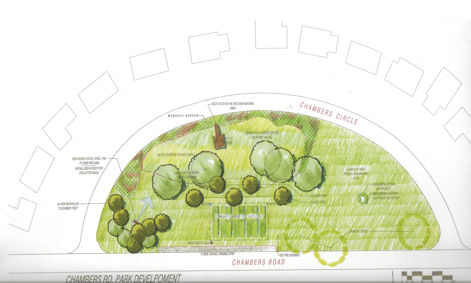 Secondly, some time ago the Clinton Township trustees had approved the addition of 5 new Oak trees for the Chambers Circle park area. These will planted this spring. Finally, we also had a special guest invited by Skip Apple (Township Manager) to discuss possible improvements to the Chambers Circle park. Tom Kessle spoke about returning the area to a more native setting and the importance of bringing wildlife to the area. This COULD include new native trees (like Horse Chestnuts, Oaks, Buckeyes, etc), wild plants/flowers, a wetlands area, a community garden and a Monarch Butterfly park as well as a play area. All of this would help support a native eco-system and improve the park area long term. You can check out the initial drawing below. This is NOT finalized, nor approved. It was simply a first draft with zero input from the UVCA or township. Think of it as a starting off point. It is only included here to keep everyone informed and hopefully get some input. One book he highly recommended for those who want to support native species is “Bringing Home Nature” by Douglas Tallamy.